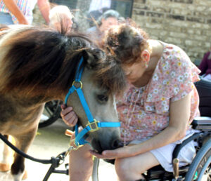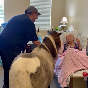 To further expand access, we have recently launched the H.A.P.Y. (Hug-A-Pony) Mobile Program, a community outreach initiative that brings our miniature horses, Thunder and Lightning, directly to autism, memory care and hospice centers, providing comfort and connection to individuals and groups who are unable to travel to our ranch. Contact Jocelyn@openmyworld.org for information.